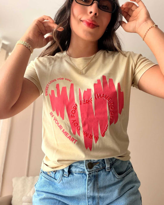 Camiseta Regular Fit Beige - Sweet Love